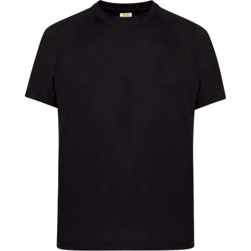 100% Polyester. Ontwerp: Eenvoudig. Hals: Crew Neck. Mouwtype: Raglan, met korte mouwen. Nekband, Zijnaden, afscheurbaar etiket. Geschikt voor: Slank. 130gsm. Duurzaamheid: Oeko-Tex Standaard 100 Gecertificeerd. S: 39 in. M: 41 in. L: 42,5 in. XL: 44 in. XXL: 45,5 in.