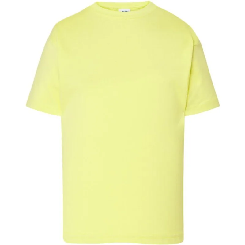 100% Katoen. Ontwerp: Eenvoudig. Halslijn: Crew Neck, Ribbed. Mouwtype: Dubbel gestikt, korte mouwen. Dubbelgestikte zoom, schouder-tot-schouder taping, zijnaden. 155gsm. Duurzaamheid: Oeko-Tex Standaard 100 Gecertificeerd. 3-4 jaar: 25 in. 9-11 jaar: 32 in. 12-14 jaar: 34 in. 5-6 jaar: 27 in. 7-8 jaar: 29 in.