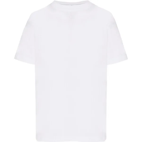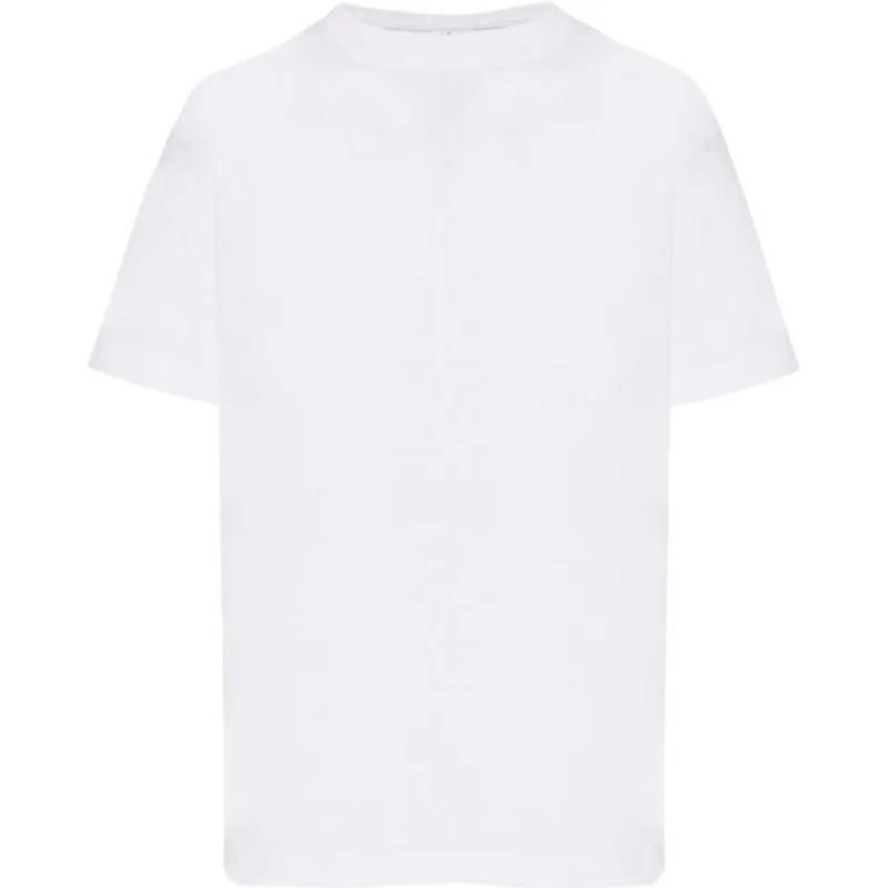 100% Katoen. Ontwerp: Eenvoudig. Halslijn: Crew Neck, Ribbed. Mouwtype: Dubbel gestikt, korte mouwen. Dubbelgestikte zoom, schouder-tot-schouder taping, zijnaden. 155gsm. Duurzaamheid: Oeko-Tex Standaard 100 Gecertificeerd. 3-4 jaar: 25 in. 9-11 jaar: 32 in. 12-14 jaar: 34 in. 5-6 jaar: 27 in. 7-8 jaar: 29 in.