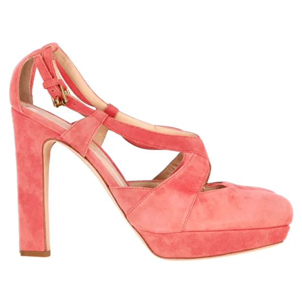 Jil Sander Cross Strap Chunky Heel Platform Pumps in Koraal Suède Prijzen
