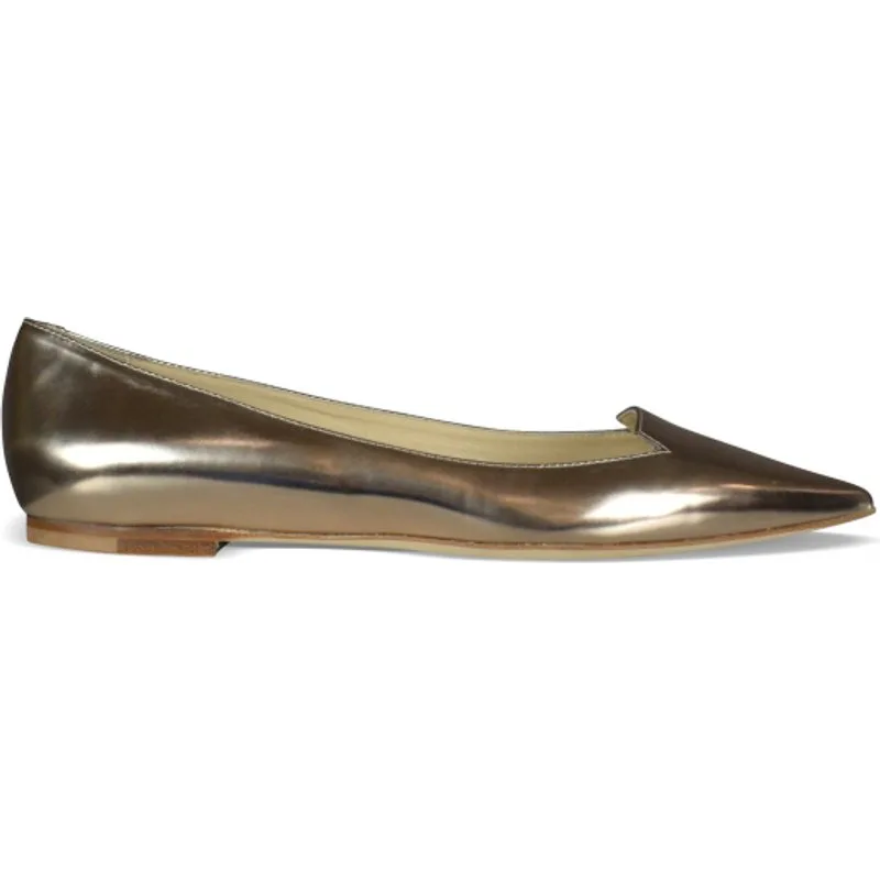 Gouden spiegelleren ATTILA Jimmy Choo ballerina's.Klassiek model met spitse neus.Dempende binnenzool.Platte hak.Gemaakt in Italië.