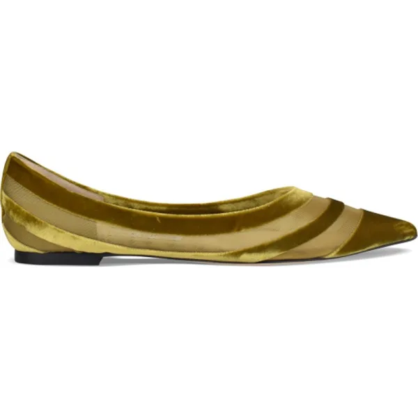 Love Flat ballerina's van Jimmy Choo.In limoengroen fluweel en visnetstof.Leren zool.Puntpunt.Gemaakt in Italië.