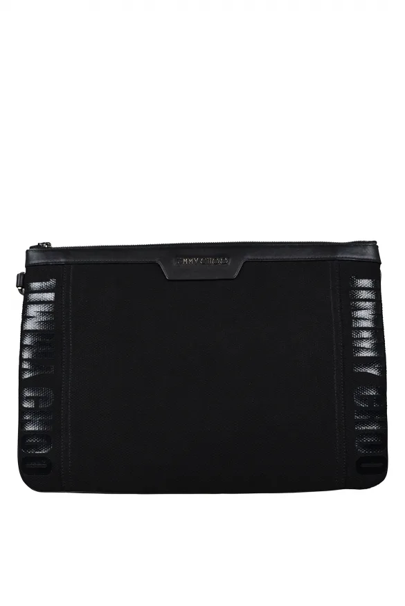 Derek Jimmy Choo clutch van zwart canvas.Zwarte Jimmy Choo-logopatch.Binnenzakken en ritssluiting.Afmetingen: lengte 26 cm x breedte 38 cm.Gemaakt in Italië.