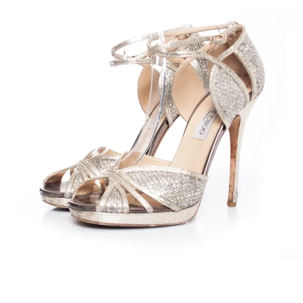 Jimmy Choo Glitter stoffen plateau sandalen. Prijzen