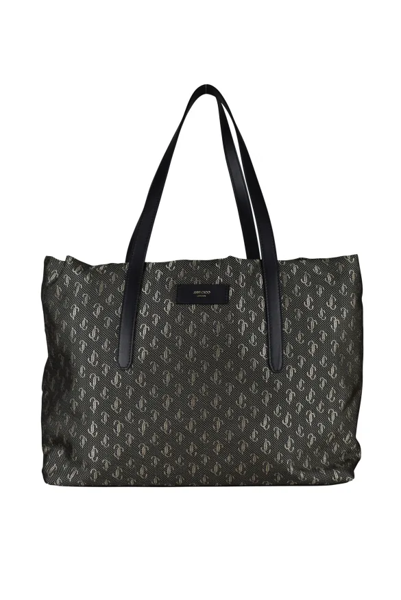 Jimmy Choo handtas van zwart en goud mesh canvas.JC logo met monogram goud over het geheel.Zwarte patch van het merk in leer op de voorkant.Een ruim compartiment.Een klein geïntegreerd vakje.Twee zwarte leren handvatten.Afmetingen: 13x20x25cm.Gemaakt in Italië.