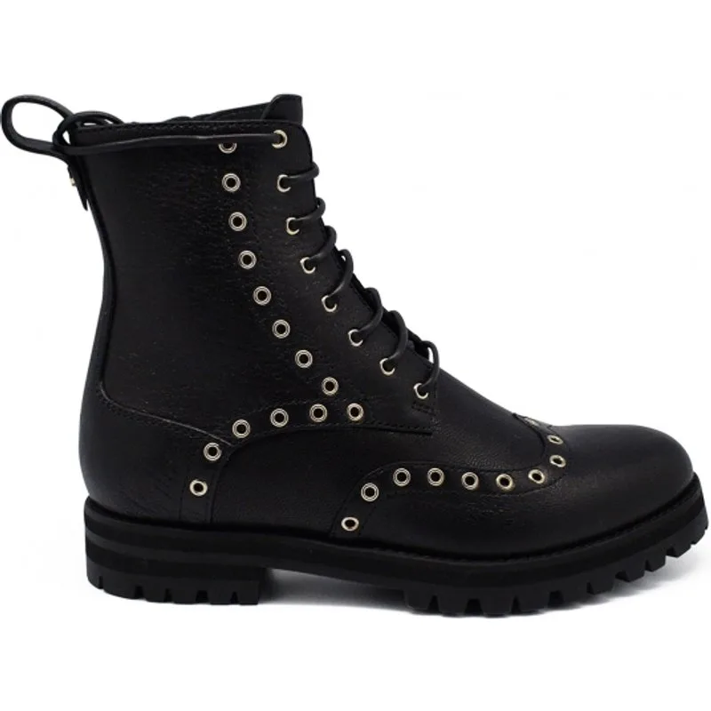 Jimmy Choo Hannah laarsjes in zwart leer met gouden studs. Leren zoolHakhoogte 3 cm. Gemaakt in Italië.