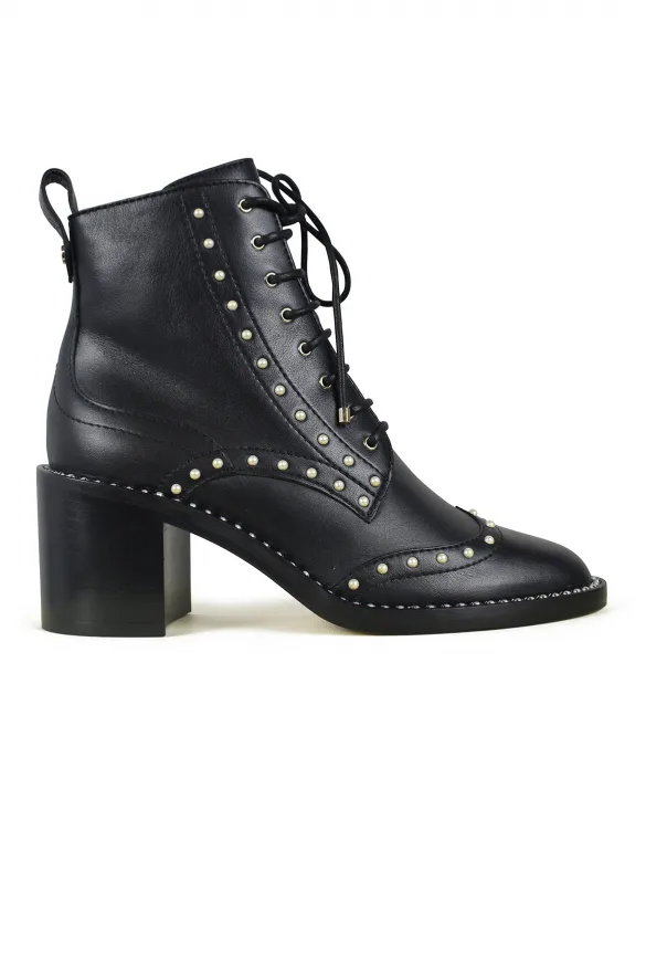 Jimmy Choo Hannah laarzen van zwart leer met gouden studs en parels.Leren zool.Hakhoogte 6,5 cm.Made in Italy.