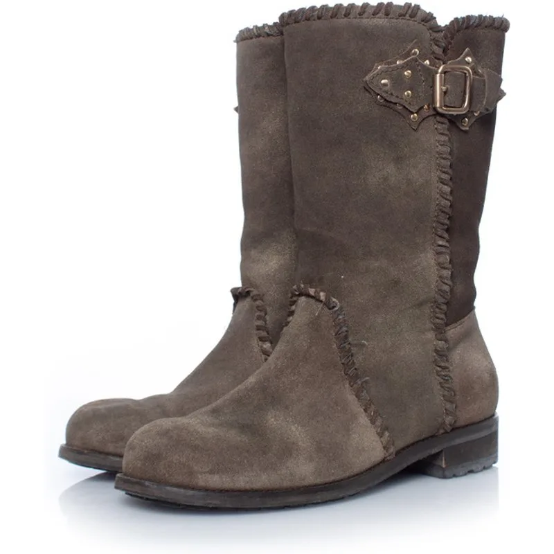 Aanbevolen verkoopprijs Jimmy Choo suède bikerlaarzen in kaki. Het item is in zeer goede staat en wordt geleverd met doos en stofzak. Afmetingen: hoogte: 250 mm.