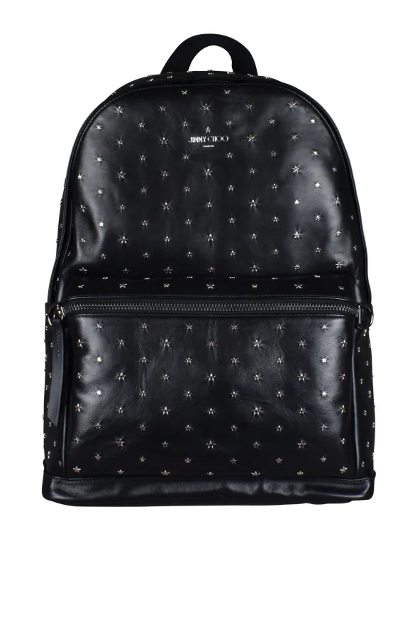 Wilmer Jimmy Choo rugzak in zwart leer.Studs sterren aan de voorkant van de tas.Zwarte verstelbare bandjes.Afmetingen: diepte 12 cm x hoogte 43 cm x breedte 31 cm.Made in Italy.