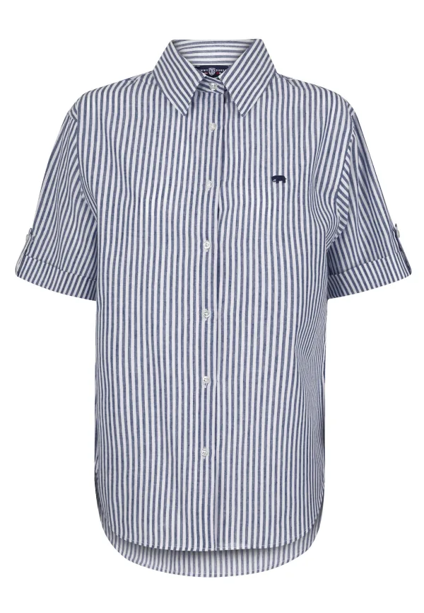 Blouse type: Klassieke blouse; Type sluiting: Knoopsluiting; Materiaal: Katoen; Motief: Gestreept; Kraag: Kentkraag; Details: Borduursels, Plooien; Pasvorm: Losse pasvorm; Armlengte: Halve mouw; Lengte: Normale lengte