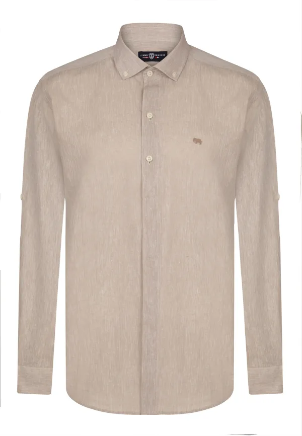 Jimmy Sanders Linnen Katoen Blend Shirt - Overhemd Heren Beige...