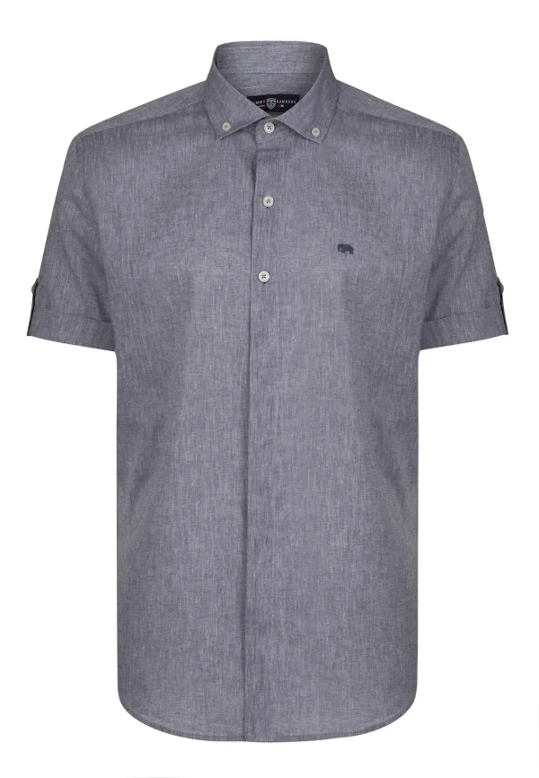 Jimmy Sanders Linnen Katoen Blend Shirt - Overhemd Heren Navy...