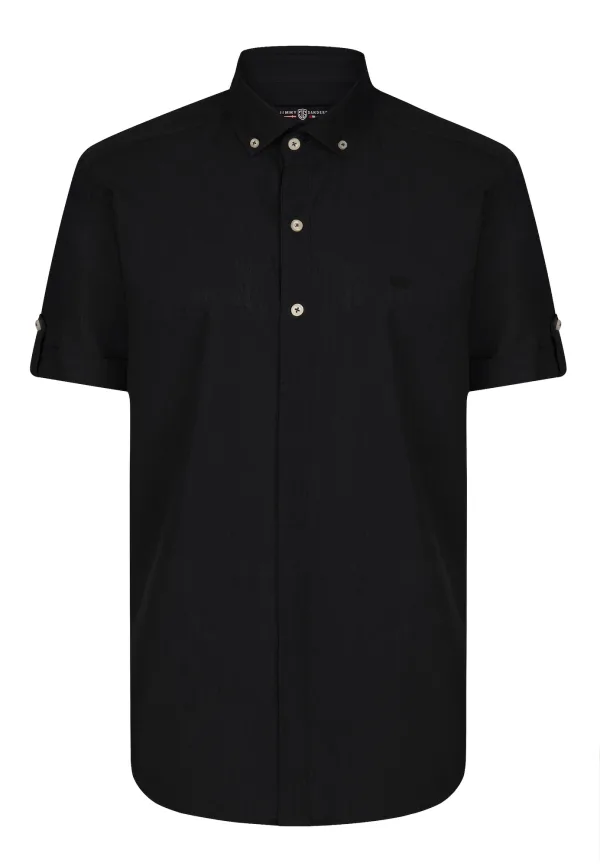 Jimmy Sanders Linnen Katoen Blend Shirt - Overhemd Heren Zwart...