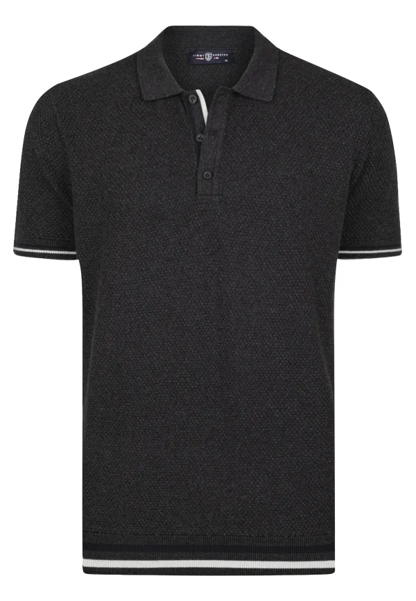 Jimmy Sanders Polo Shirt Korte Mouwen 100% Katoen Heren Antraciet...
