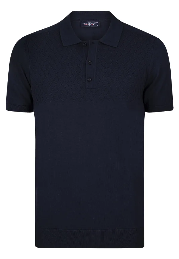Jimmy Sanders Tricot Polo Shirt Korte Mouwen Heren Navy -...