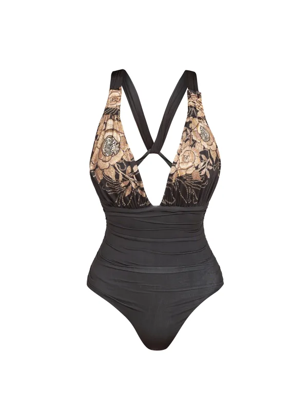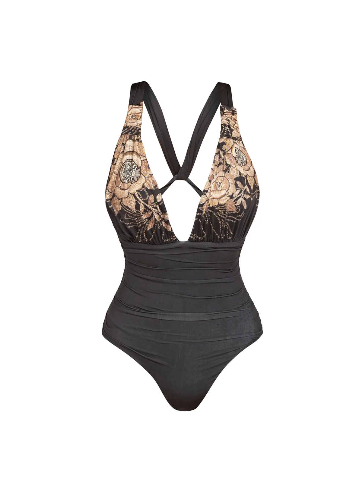 JIORO Badpak ‘GOLDEN ROSES’ zwart