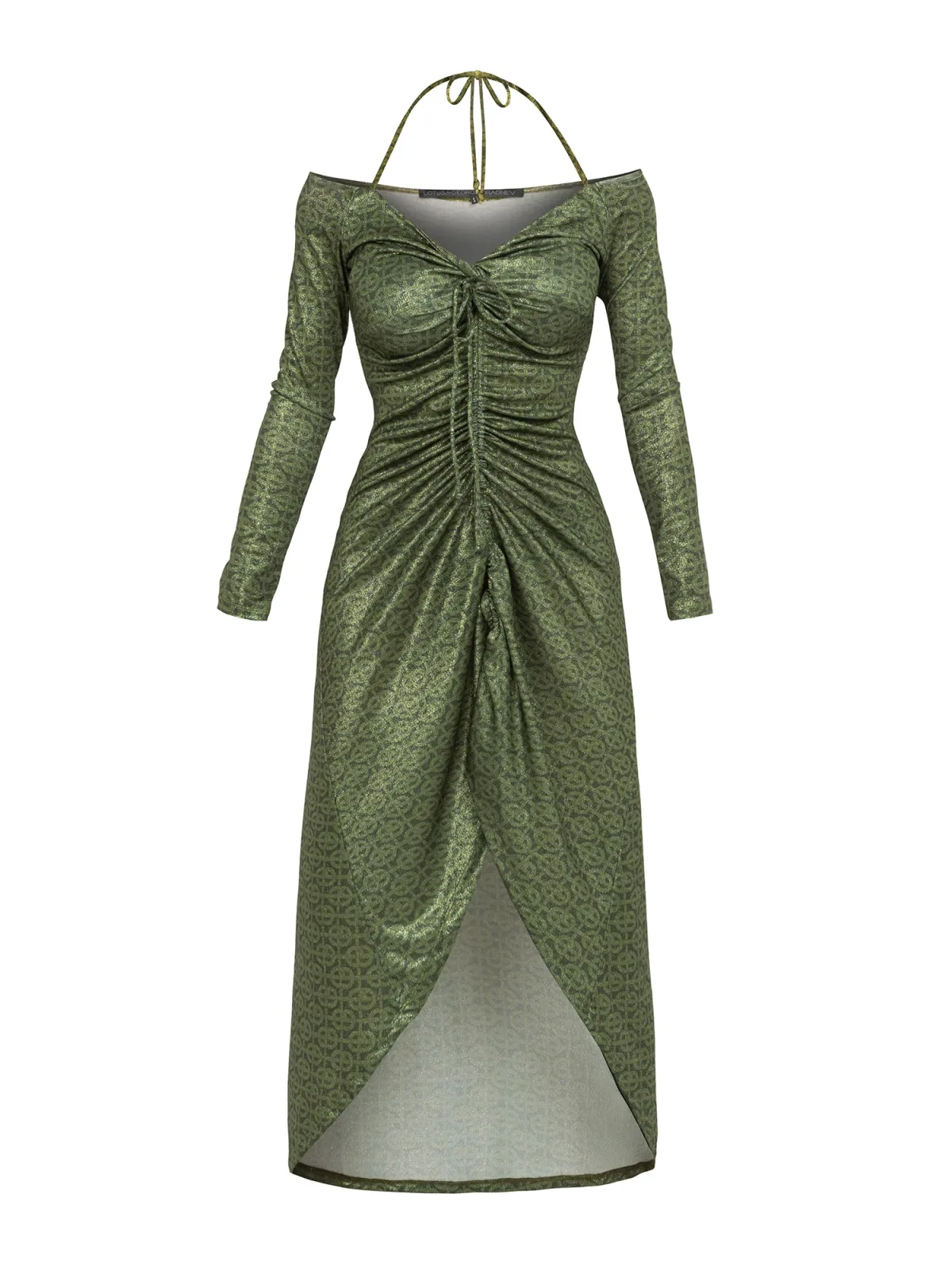 Halstype: V-hals; Motief: Logoprint; Details: Gedrapeerd; Lengte: Lang/maxi; Pasvorm: Aansluitende pasvorm; Armlengte: Lange mouw