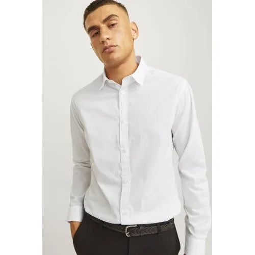 JJ REBEL JREBGAVIN SOLID SHIRT LS NOOS Heren Overhemd – White