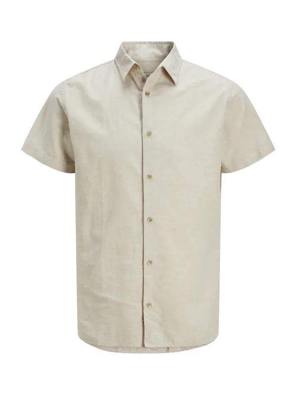JJ REBEL comfort casual overhemd met linnen beige