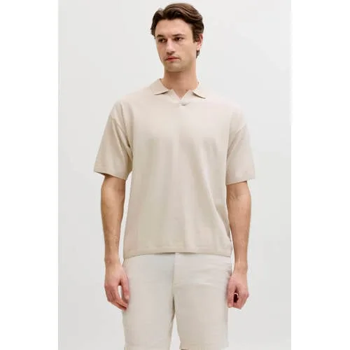 JJ REBEL relaxed polo fijn gebreid beige Prijzen