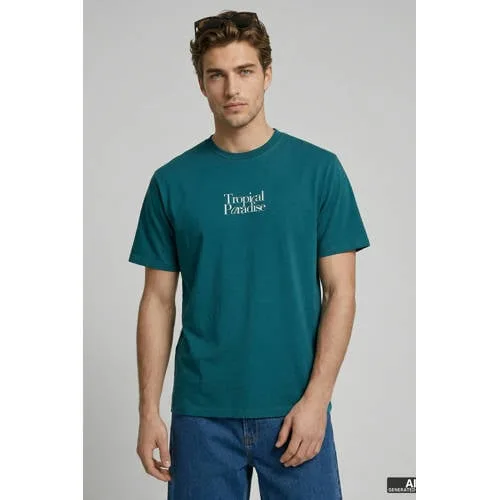 JJ REBEL Heren Backprint T-shirt JREBCHRISTIAN Teal - Maat XXL