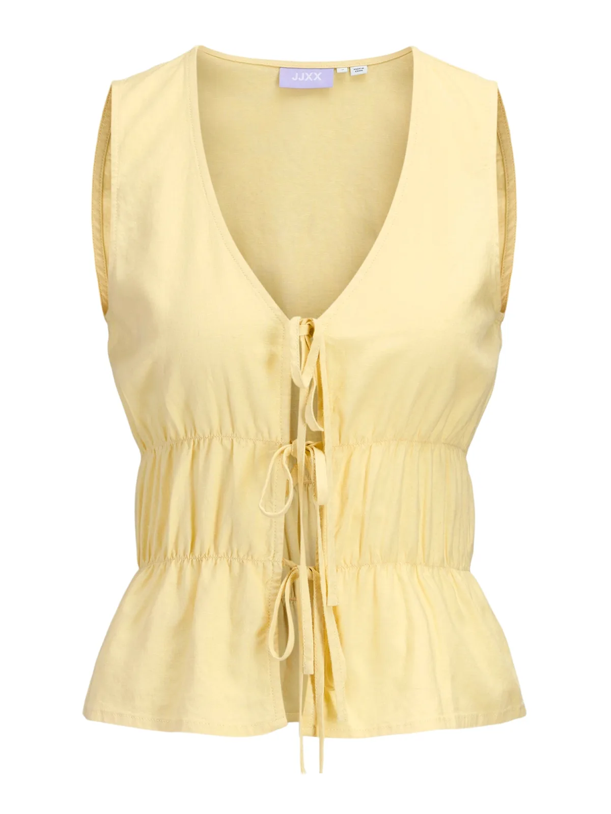 dames top van JJXX;mix van viscose en linnen;regular fit;Model 'ALMIRA';vetersluiting;ruglengte bij maat s: 50 cm