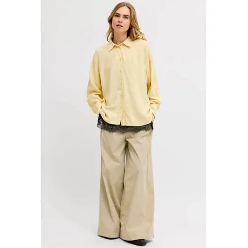 Deze lichtgele linnen blouse voor dames van JJXX is een frisse basic voor zonnige dagen. De mix van 70% viscose en 30% linnen voelt luchtig en soepel aan, ideaal voor het voorjaar en de zomer. De klassieke kraag, lange rechte mouwen en effen kleur geven een rustige, verzorgde uitstraling die makkelijk te combineren is met je favoriete jeans, pantalon of korte broek.Comfortabele blouse met doordachte details Gemaakt van 70% viscose en 30% linnen, voor een luchtig en soepel draaggevoel Lange rechte mouwen voor een relaxed silhouet Klassieke kraag en volledige knoopsluiting voor een tijdloze look Effen lichtgele kleur, eenvoudig te combineren in je garderobe Geweven kwaliteit zonder borstzakken voor een rustige, cleane uitstraling Valt volgens het maatadvies normaal, kies je gebruikelijke maat Wasbaar op 30 graden en warm strijkbaar (2 punten), niet geschikt voor de droogtrommelIdeaal voor zonnige dagen en lichte lagenDeze blouse past goed bij zomerse outfits. Draag het losjes over een top voor een laagjeslook of gesloten in je broek voor een meer geklede stijl. De lichte stof maakt het een fijne keuze voor warme dagen, zowel naar werk als in je vrije tijd.JJXX: moderne stijlen met een casual randjeJJXX staat bekend om eigentijdse items met een casual en toegankelijke uitstraling. De collecties sluiten aan op het dagelijks leven, met kleding die gemakkelijk te dragen en te stylen is. Zo voeg je met deze blouse een betrouwbare basic toe waar je vaak naar grijpt.Een lichte, luchtige blouse die je garderobe klaar maakt voor zonnige dagen.