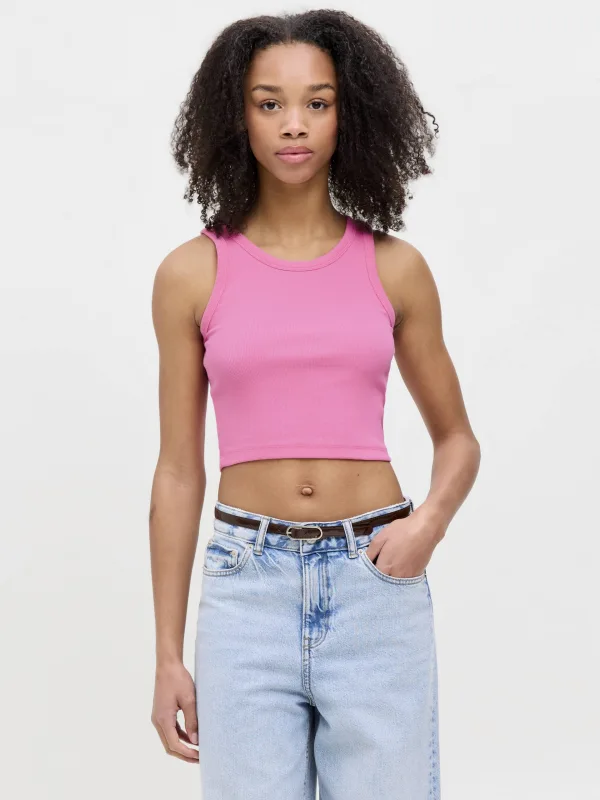 Design: Gevoerde zoom/rand, Ingelegde kraag; Materiaal: Jersey; Halstype: Ronde hals; Motief: Effen; Soort bandjes: Normale bandjes; Extra's: Op staal naden, Voelt zacht aan; Pasvorm: Slanke pasvorm; Armlengte: Mouwloos; Lengte: Korte pasvorm