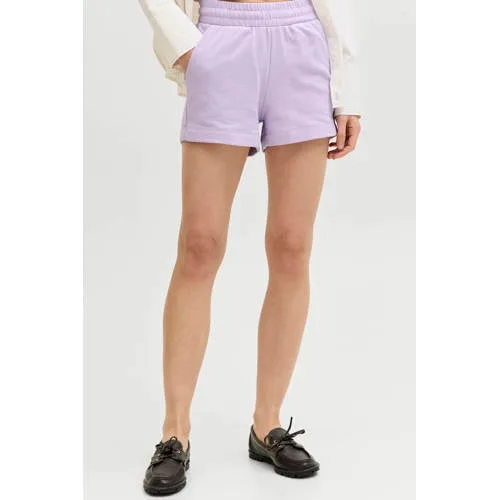 Deze lila JJXX korte broek is een basic voor ontspannen dagen. De zachte sweatstof voelt comfortabel aan op de huid en de losse pasvorm geeft je veel bewegingsvrijheid. Dankzij de hoge taille met elastische tailleband blijft de shorts prettig zitten, of je nu thuis aan het relaxen bent of even snel de deur uit gaat.Kenmerken van de lila sweat shorts Casual sweat shorts in effen lila, makkelijk te combineren met T-shirts en hoodies Losse pasvorm voor een relaxed silhouet en extra comfort Hoge taille met elastische tailleband voor een fijne, aangesloten pasvorm zonder knoop of rits Gemaakt van katoen, met een zachte en soepele touch Geen zakken voor een rustige, strakke look Geschikt voor dagelijks gebruik in het voorjaar en op zomerse dagen Vrouwelijke pasvorm, valt volgens het maatadvies normaal Onderhoudsvriendelijk: wasbaar op 40 graden, drogen op lage temperatuur en warm strijkbaarOntspannen stijl voor elke dagDe Jxalfa shorts passen goed bij een casual garderobe. Draag de korte broek met een cropped top of basic T-shirt en sneakers voor een eenvoudige, comfortabele look. De hoge taille komt mooi uit met een ingestopt shirt of een wijde sweater.JJXX, denim en basics met attitudeJJXX is het dameslabel dat focust op sterke basics en eigentijdse fits, met roots in de denimwereld. Verwacht toegankelijke items die je makkelijk combineert in je dagelijkse outfits. Met deze shorts haal je een praktisch garderobestuk in huis dat je op veel manieren kunt stylen.Een comfortabele keuze voor dagen waarop je relaxed maar toch verzorgd voor de dag wilt komen.