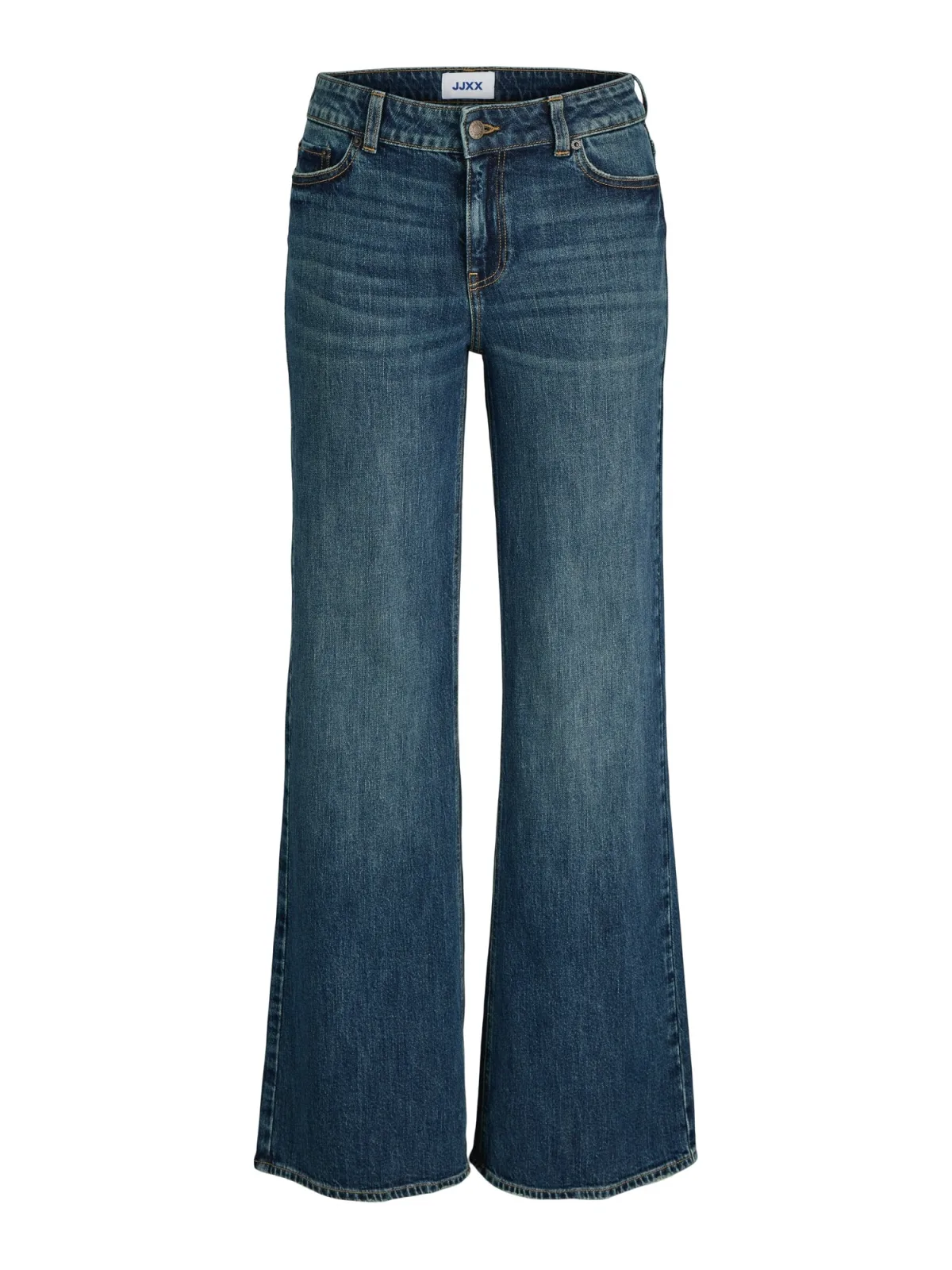 Design: Gevoerde zoom/rand, Ritssluiting, 5-pocket-style; Type sluiting: Ritssluiting; Materiaal: Denim; Motief: Effen; Extra's: Gewassen effect, Vaste grip, Riemlussen; Wassing: Blauw denim; Lengte: Lang/maxi; Pasvorm: Flared; Taillehoogte: Mid waist