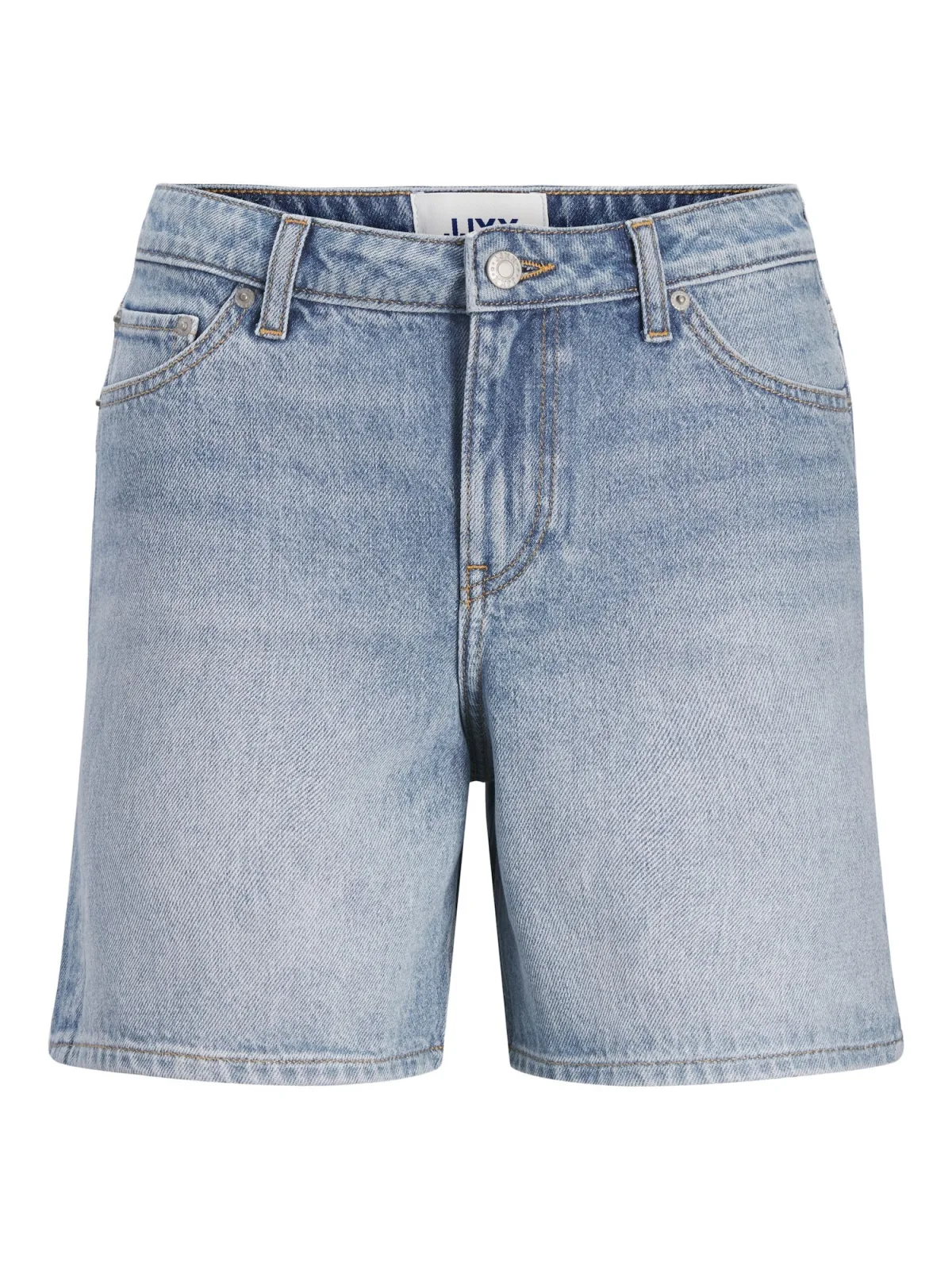 Design: 5-pocket-style; Type sluiting: Ritssluiting; Materiaal: Denim; Motief: Effen; Extra's: Contrasterende naden; Wassing: Heavy washed; Lengte: Kort/mini; Pasvorm: Loosefit; Taillehoogte: Mid waist