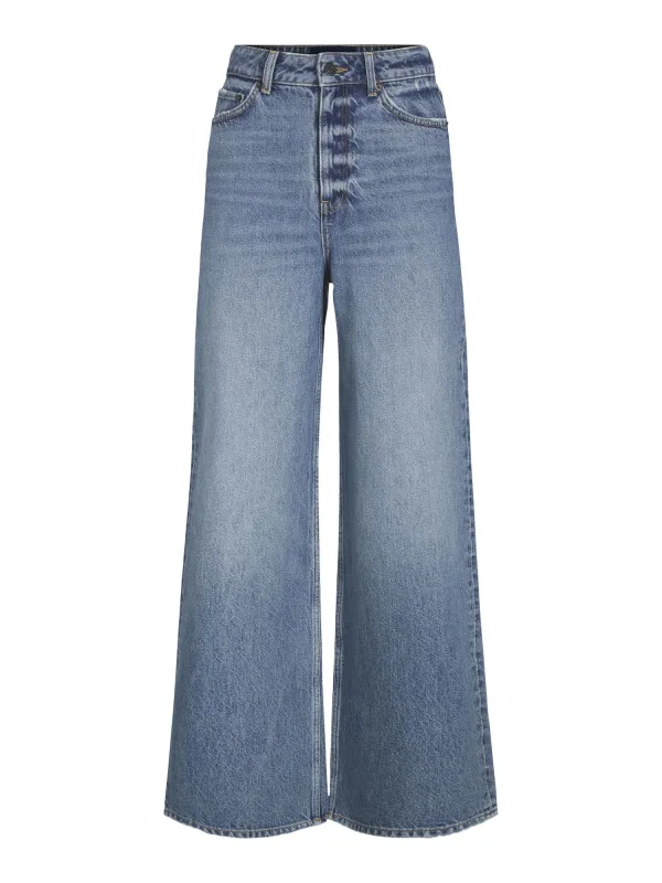 Design: Gevoerde zoom/rand, Knoopsluiting, 5-pocket-style; Type sluiting: Ritssluiting; Materiaal: Denim; Motief: Effen; Extra's: Label patch/label flag, Gewassen effect, Vaste grip, Riemlussen; Wassing: Heavy washed; Lengte: Lang/maxi; Pasvorm: Wide leg; Taillehoogte: High waist