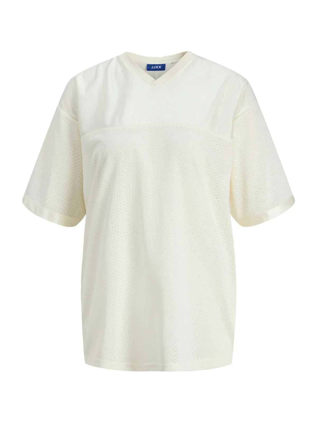 Design: Gevoerde zoom/rand, Overcut schouder; Halstype: V-hals; Motief: Tekst print; Details: Borduursels; Extra's: Mesh, Applicaties; Pasvorm: Losse pasvorm; Armlengte: Halve mouw; Lengte: Normale lengte