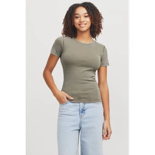 Dit JJXX T-shirt JXFRANKIE voor dames heeft een ronde hals en korte mouwen. Gemaakt van katoen en elastaan. De rib gebreide structuur zorgt voor een comfortabele en aangename pasvorm. Perfect voor dagelijkse en casual outfits.
