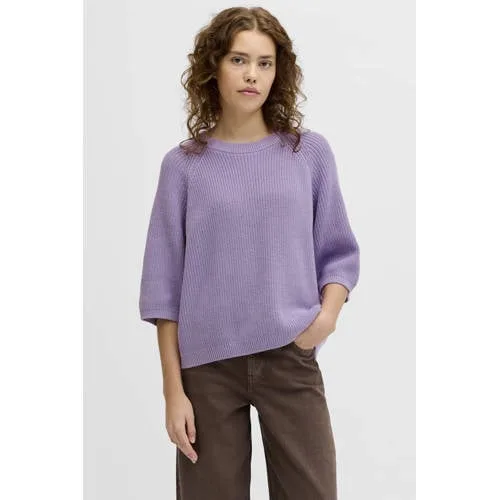 Design: Geribbelde kraag, Rechte zoom, Raglanmouwen; Materiaal: Knitwear; Halstype: Ronde hals; Motief: Effen; Extra's: Met textuur, Voelt zacht aan; Pasvorm: Losse pasvorm; Armlengte: Driekwart mouw; Lengte: Normale lengte