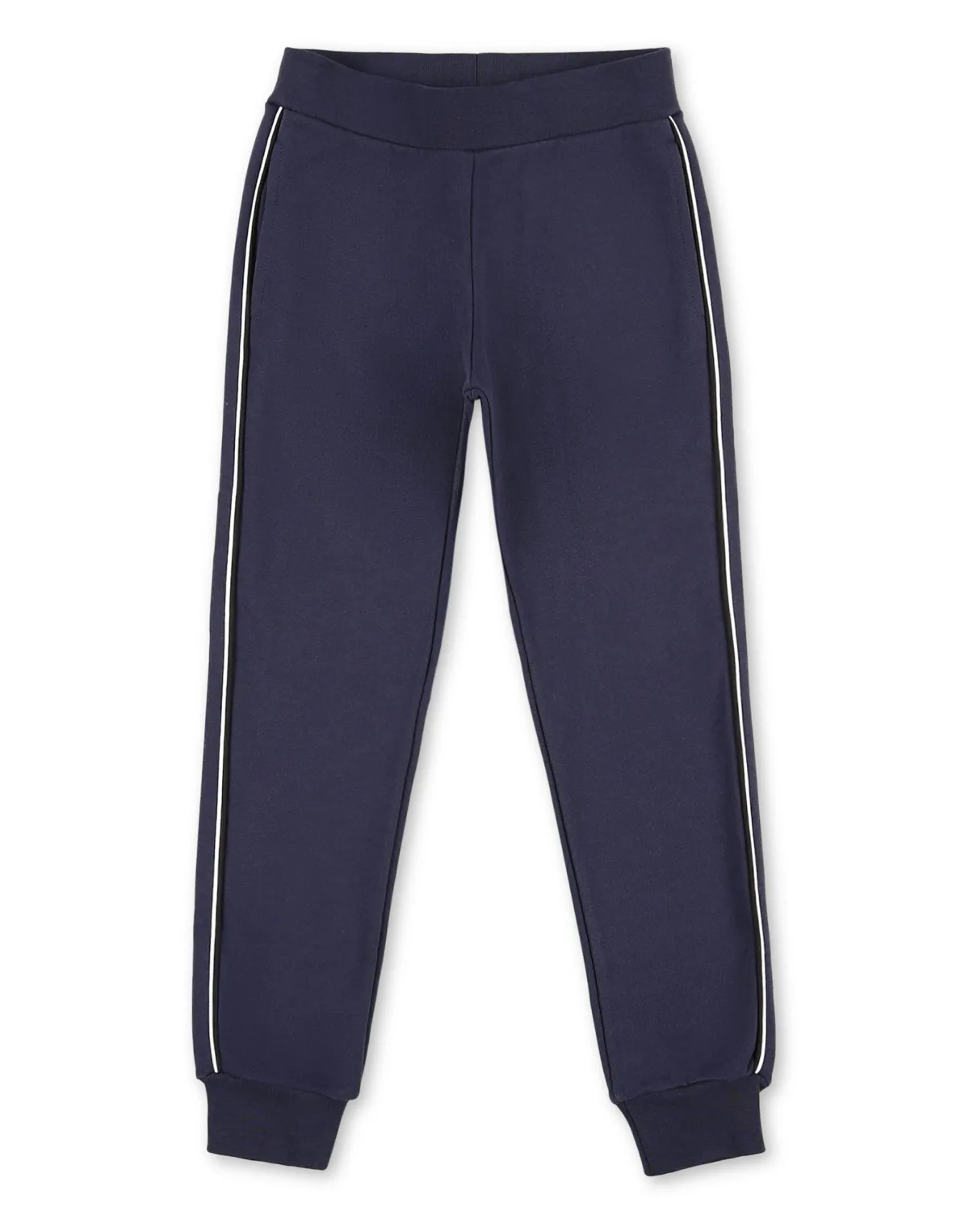 The brand’s monogram is the key feature of these polyester techno-fabric jogging pants. As a matter of fact it is embroidered under the right rear pocket. They also feature contrasting piping and two slit front pockets. Both waistband with drawstring and bottom cuffs are ribbed.