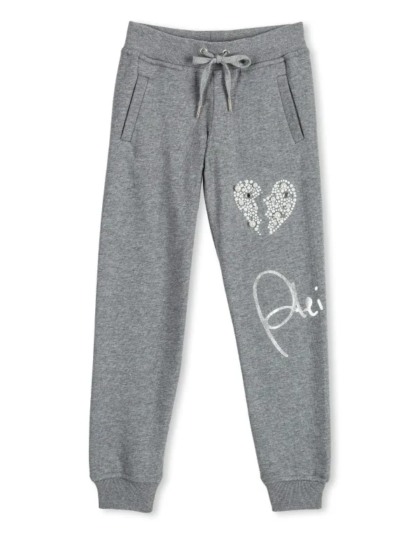 Cotton jersey jogging trousers enriched by prints, stones and crystals. Two pockets.