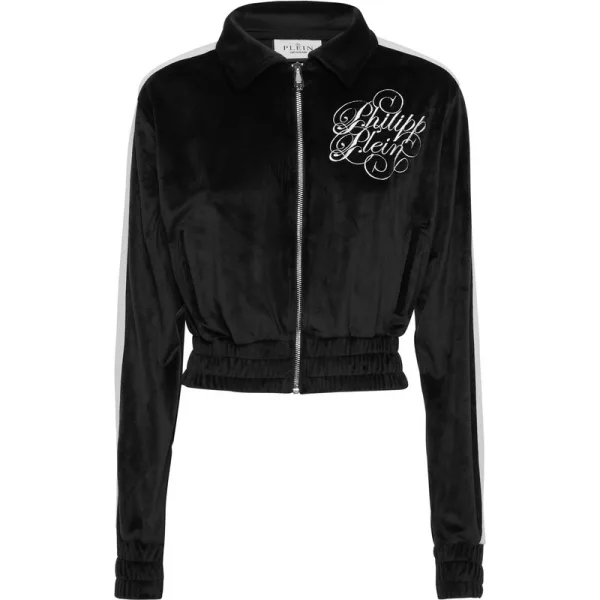 Bepaal je stijl met een vleugje persoonlijkheid. Bekijk dit sweatvest versierd met originele details. Chenille stof Borduursel op de linkerborst Grosgrain lint langs de mouwen Ritssluiting Twee paspelzakken Elastische zomen