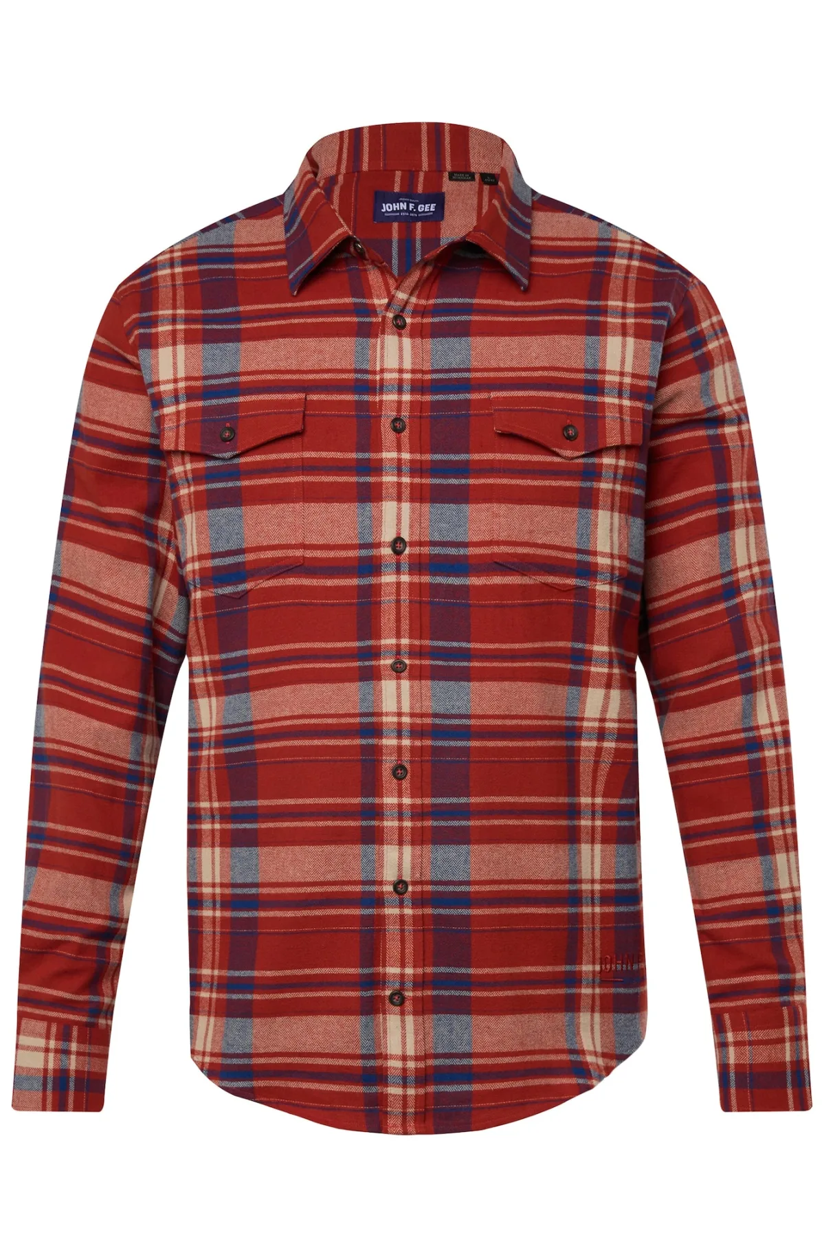 John F. Gee Overhemd ecru / enziaan / karmijnrood Prijzen