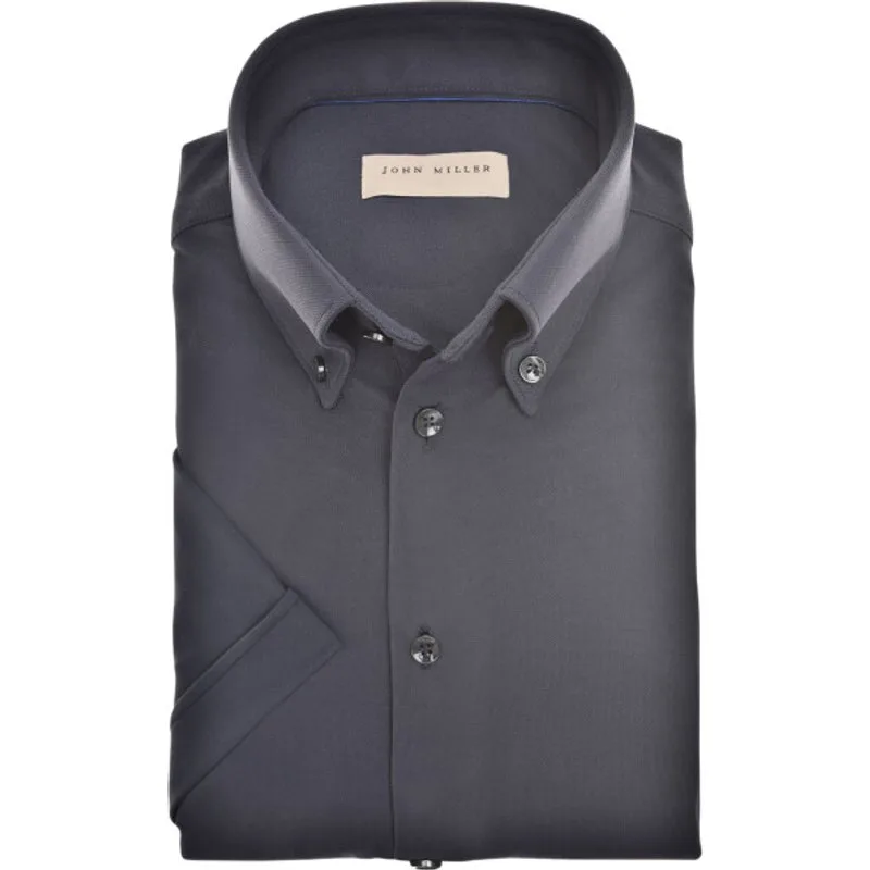 Ontdek de elegante John Miller korte mouw overhemden in een stijlvolle donkerblauwe tint. Dit kledingstuk is perfect voor de moderne man die op zoek is naar een mix van verfijning en comfort. Gemaakt van hoogwaardig polyamide/nylon, biedt dit overhemd een gevoel van luxe dat heerlijk aanvoelt op de huid, speciaal ontworpen voor zomerse dagen. De klassieke kraag van dit overhemd geeft een eigentijdse draai aan een tijdloze look. De subtiele structuur van de effen stof voegt net dat beetje extra flair toe, zonder afbreuk te doen aan de verfijning van het overhemd. De knoopsluiting is zorgvuldig afgewerkt met bijpassende donkere knopen die prachtig contrasteren met de rijke kleur van de stof. De pasvorm is slim fit, waardoor het je figuur op een flatterende manier accentueert zonder in te boeten aan comfort. Dit maakt het overhemd uitermate geschikt voor zowel een professionele uitstraling op kantoor als een stijlvolle outfit voor een informele uitje. Een mooi detail is de strakke