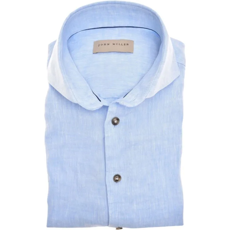 Geef je garderobe een stijlvolle upgrade met het John Miller Lange Mouw Overhemd in Lichtblauw, modelnummer 5142125. Dit herenoverhemd combineert tijdloze elegantie met modern comfort en is perfect voor zomerse dagen en lichte, casual gelegenheden. Het lichtblauwe overhemd straalt eenvoud en verfijning uit. Gemaakt van hoogwaardig linnen, biedt het een heerlijk ademend en luchtig gevoel dat je koel houdt, ongeacht waar de dag je naartoe brengt. Linnen staat bekend om zijn duurzaamheid en comfort, wat dit kledingstuk ideaal maakt voor het warme seizoen. De klassieke kraag voegt een vleugje elegantie toe aan dit overhemd. Het biedt net genoeg structuur om een nette, maar tevens ongedwongen look te behouden, geschikt voor zowel kantooruren als een avondje uit. De subtiele knoopsluiting aan de voorkant zorgt voor een strakke en gestroomlijnde afwerking. Wat dit John Miller overhemd echt onderscheidt, is de unieke effen uitstraling met een subtiel geweven patroon. Dit patroon geeft je