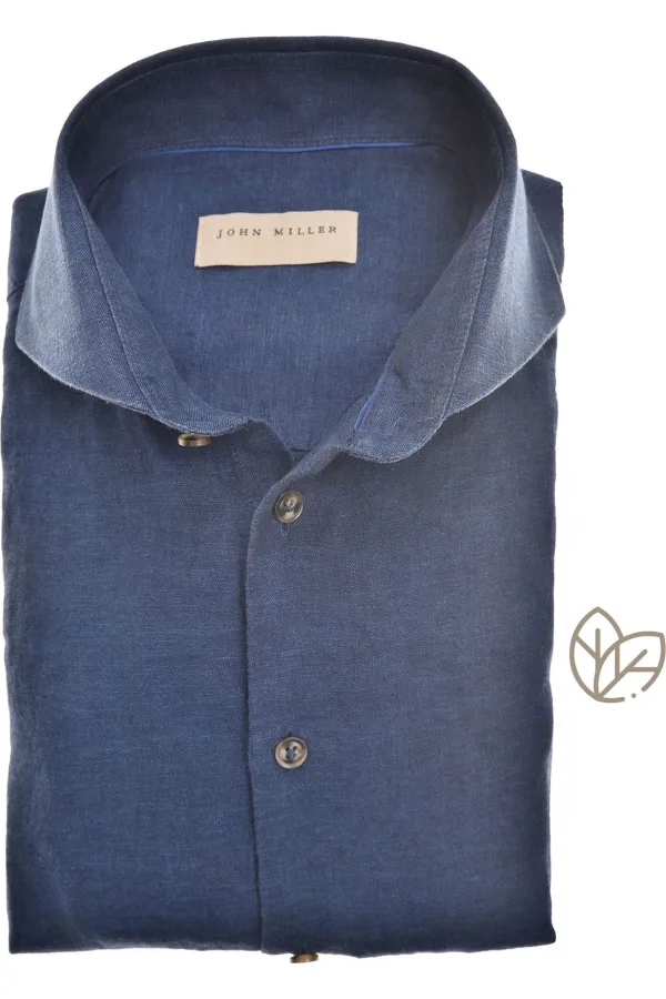 John Miller Linnen Overhemd blauw, Effen Prijzen