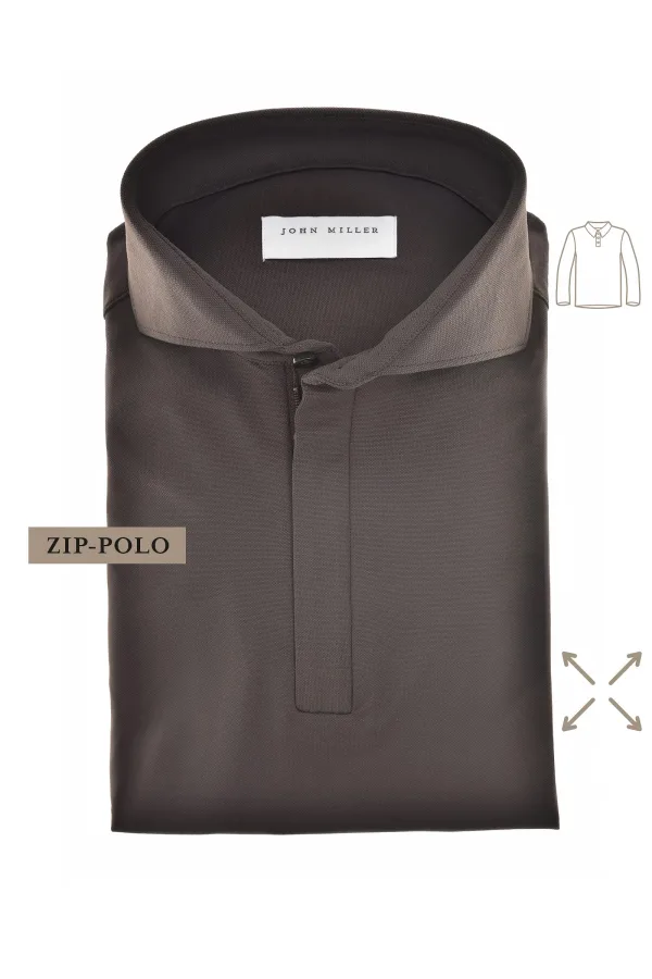 John Miller Poloshirt lange mouw donkerbruin, Effen