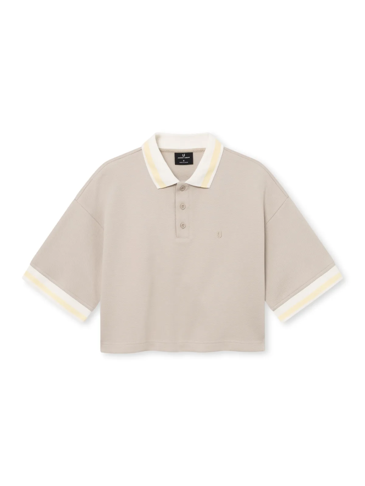 Design: Gevoerde zoom/rand, Knop placket, Oversized, Geribd ceintuurtje, Overcut schouder; Type sluiting: Slip; Materiaal: Katoen; Halstype: Polokraag; Motief: Effen; Extra's: Op staal naden; Pasvorm: Losse pasvorm; Armlengte: Kwartmouw; Lengte: Korte pasvorm