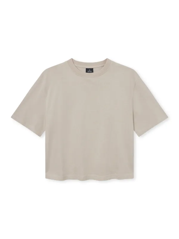 Design: Recht model, Oversized, Overcut schouder; Materiaal: Katoen; Halstype: Ronde hals; Motief: Effen; Extra's: Label borduurwerk, Op staal naden, OEKO-TEX® STANDARD 100, Zware stof; Pasvorm: Losse pasvorm; Armlengte: Kwartmouw; Lengte: Korte pasvorm