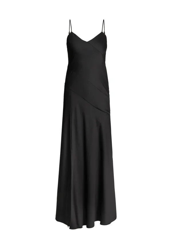 Design: Gevoerde zoom/rand; Type sluiting: Ritssluiting; Materiaal: Satijn; Halstype: V-hals; Motief: Effen; Soort bandjes: Spaghettibandjes; Extra's: Gladde stof; Lengte: Lang/maxi; Snit: Uitlopend; Pasvorm: Normale pasvorm; Armlengte: Mouwloos