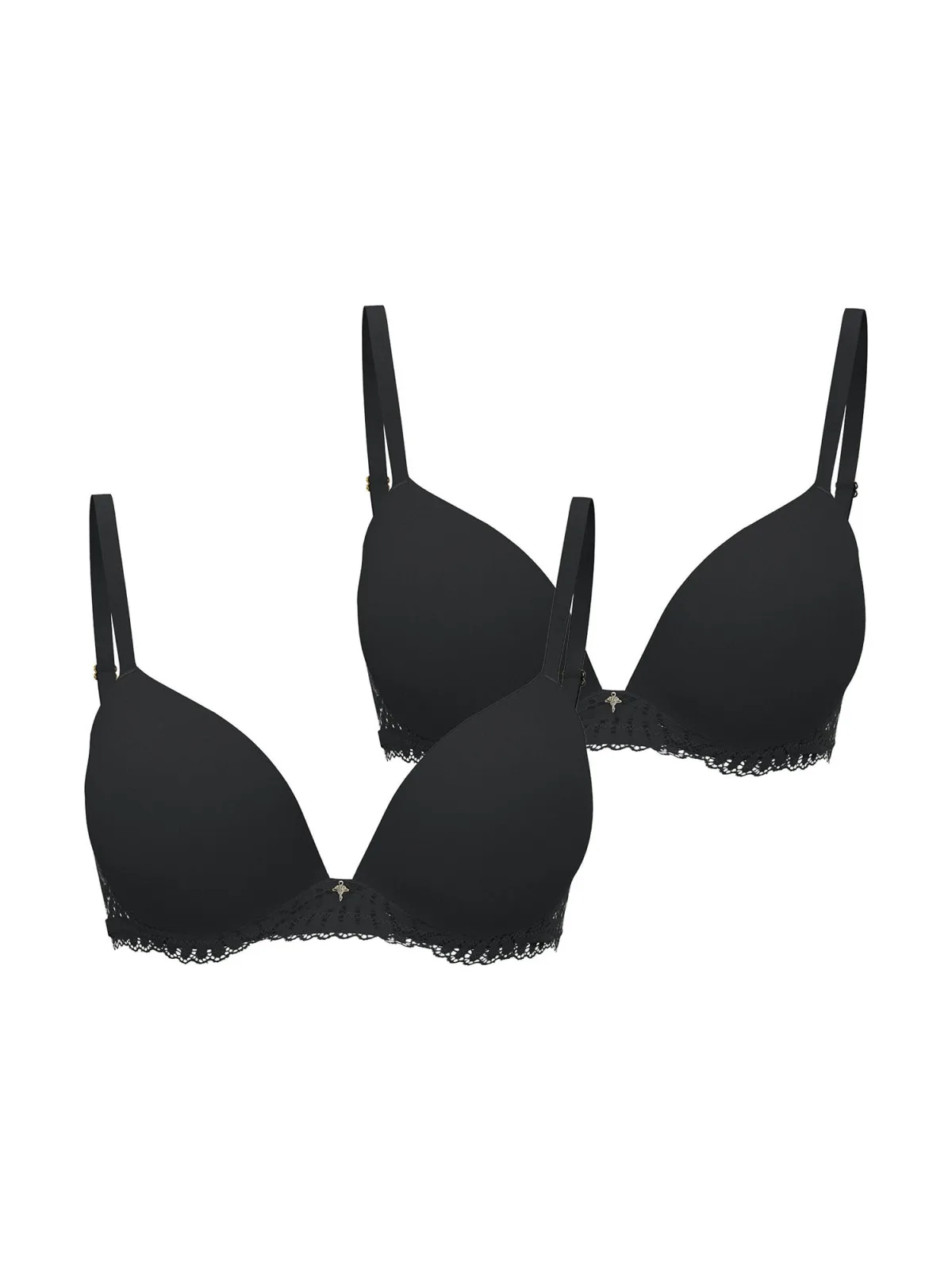Cup soorten: Full cup bh; Soort bandjes: Normale bandjes; Bh/bikini type: T-shirt; Beugel: Met beugel; Design: Haaksluiting; Type sluiting: Haakjes; Motief: Effen; Details: Kant; Extra's: Op staal naden; Aantal: 2 Pack