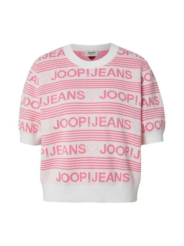 JOOP! Jeans Trui ‘Karie’ lichtroze / donkerrood / wit