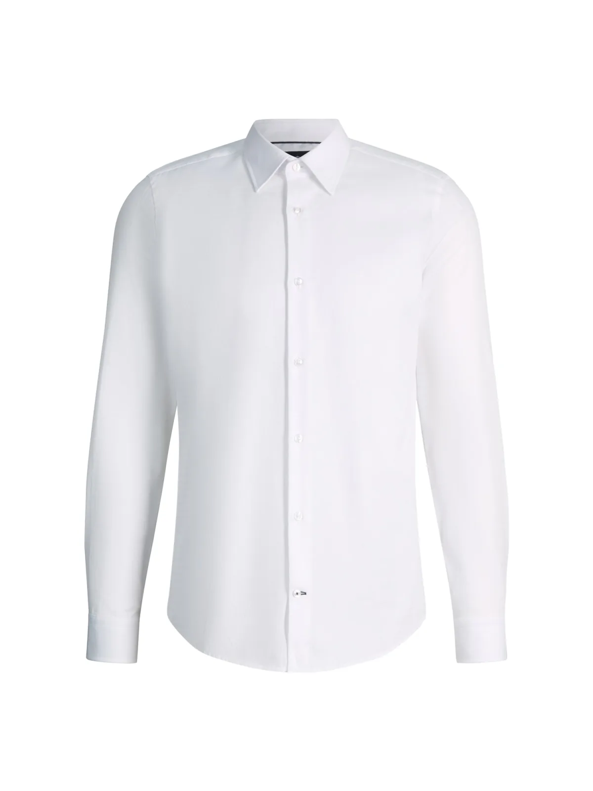 Design: Gevoerde zoom/rand; Type sluiting: Knoopsluiting; Materiaal: Katoen; Motief: Effen; Kraag: Kentkraag; Extra's: Op staal naden; Pasvorm: Slim fit; Armlengte: Lange mouw