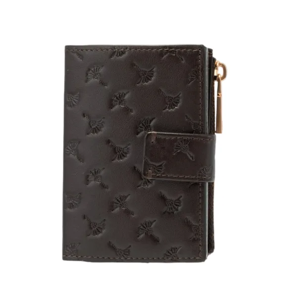 Design: Drukknopsluiting, Meerdere vakken; Type sluiting: Drukknoop; Materiaal: Glad leer; Extra's: All-over patroon, Inclusief hanger